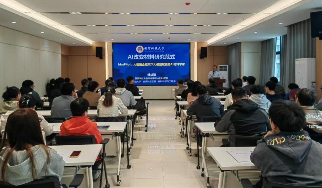 叶益聪教授系统阐述了团队在“人机协同材料研发系统(MatPilot)”上的研究突破,以储能陶瓷、高温合金等材料的智能设计为例,展示了AI技术如何将材料研发周期从数年缩短至数月甚至数周,为材料学科的创新发展提供了全新思路。报告现场座无虚席,师生们就AI在材料领域的应用瓶颈、跨学科人才培养等问题与叶益聪教授深入互动,现场学术氛围浓厚。叶益聪教授详细的讲解,使实验室师生受益匪浅。最后,报告会在师生热烈的掌声中圆满结束。
